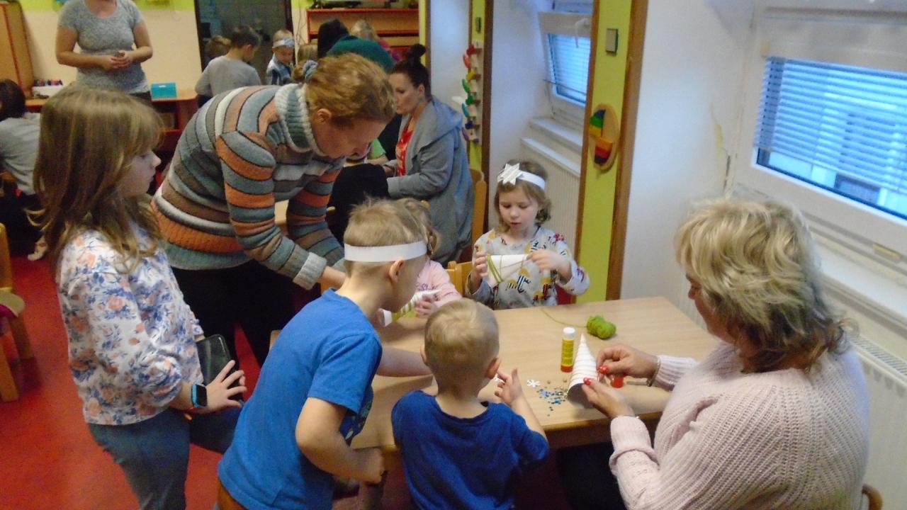Tvoření dětí s rodiči se všem moc líbilo. Vytvořili si krásné stromečky.