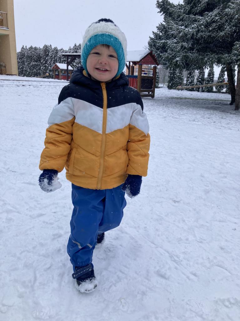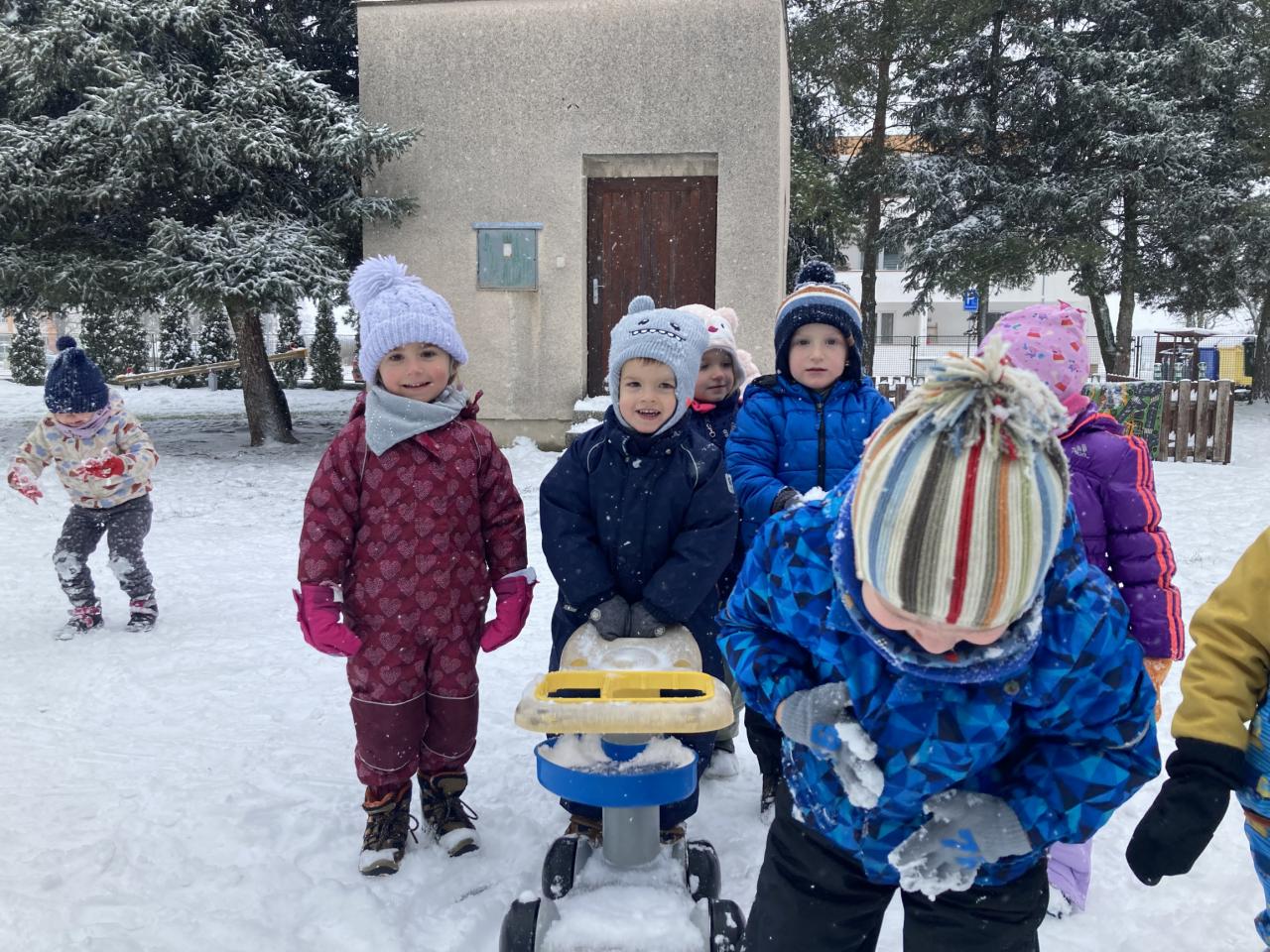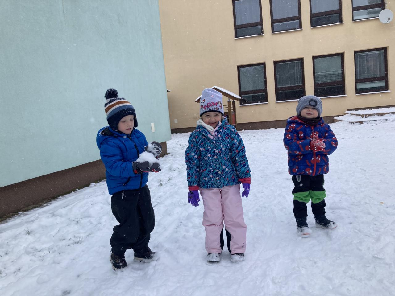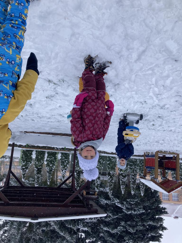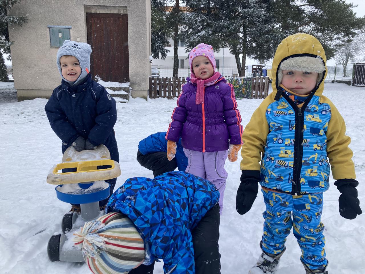 V pondělí nás překvapil sníh a pořádně jsme si ho s dětmi užili na naší zahradě.