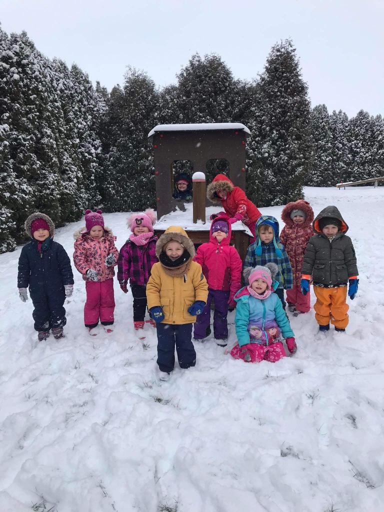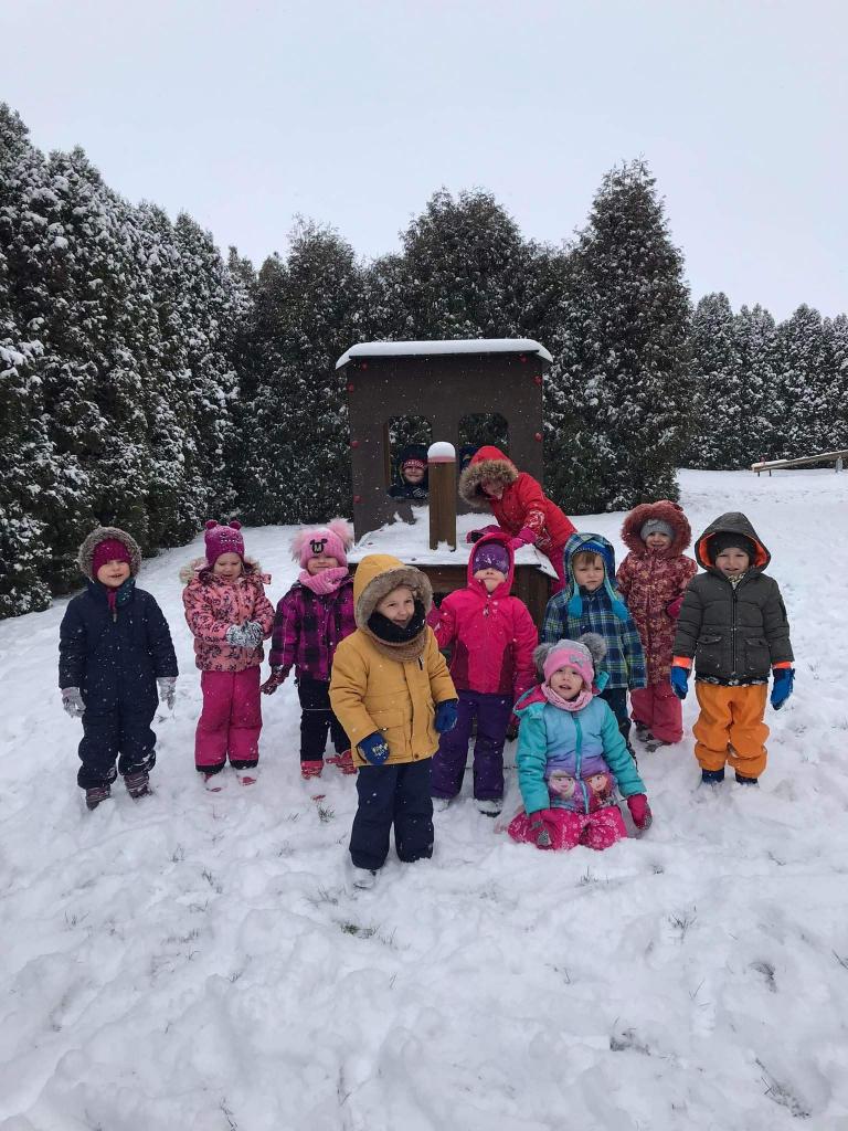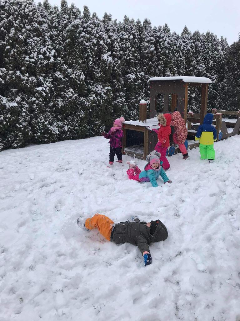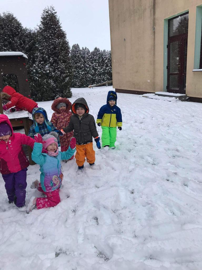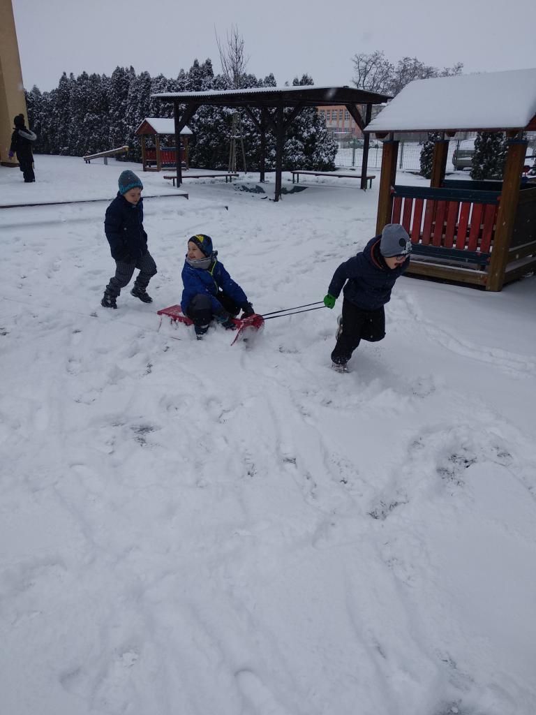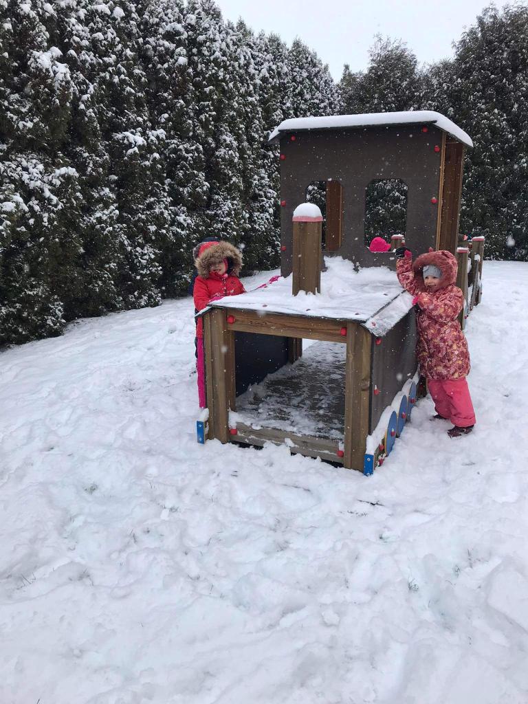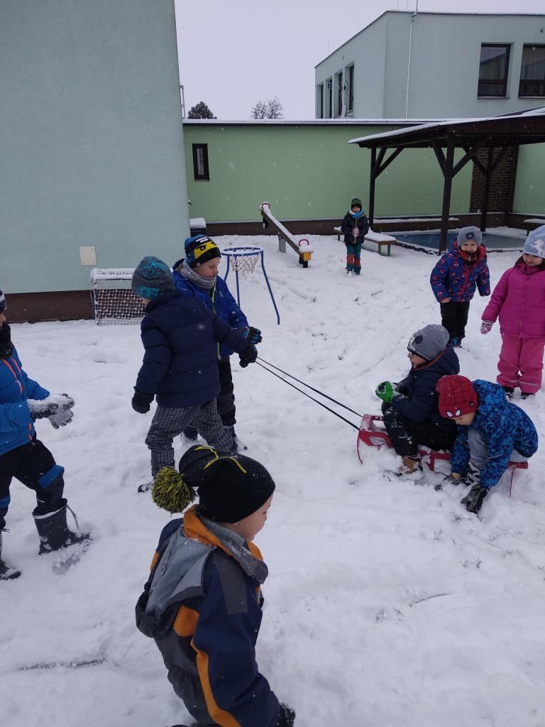 V pondělí nás překvapil sníh a pořádně jsme si ho s dětmi užili na naší zahradě.