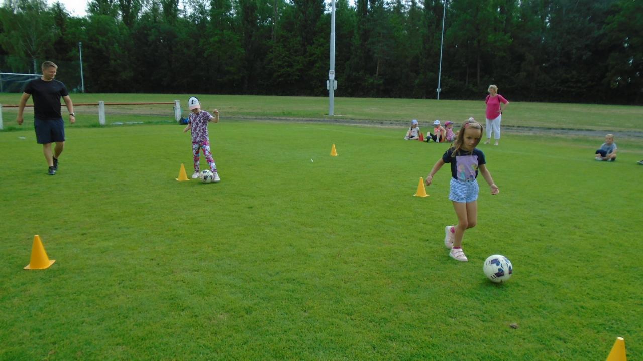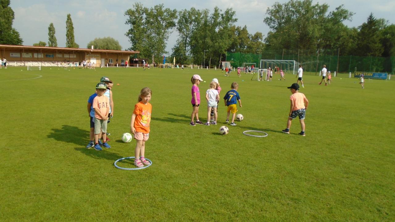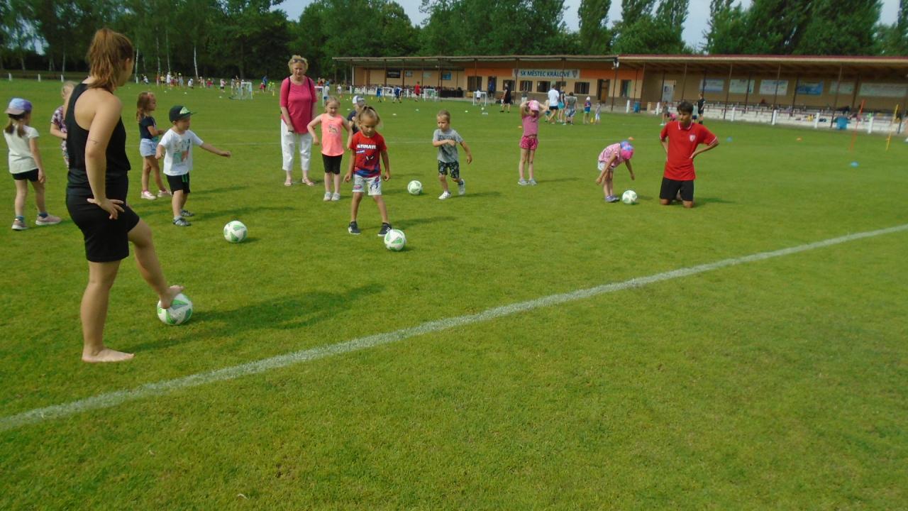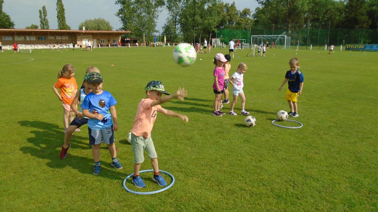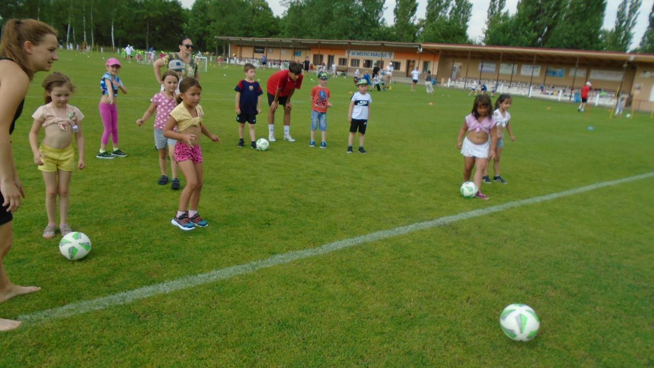 Fotbalové a sportovní soutěže na stadionu SKMK zpestřily dětem z Broučků a Motýlků jedno z posledních červnových dopolední.