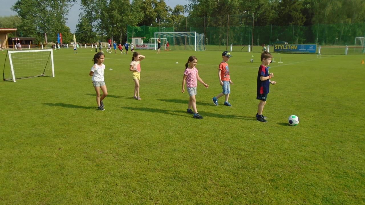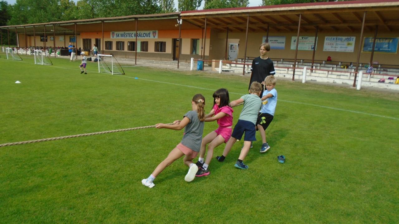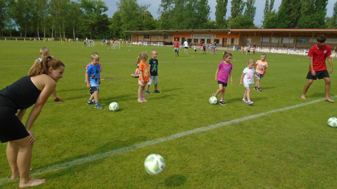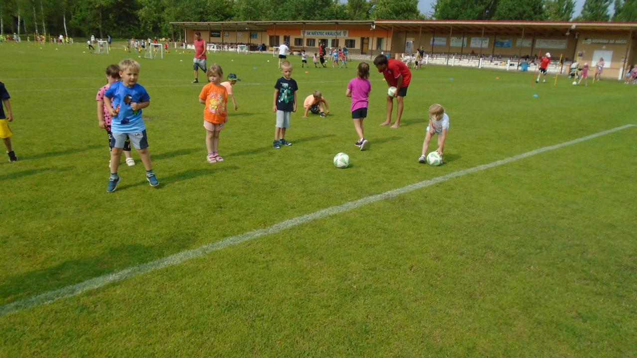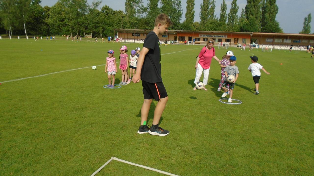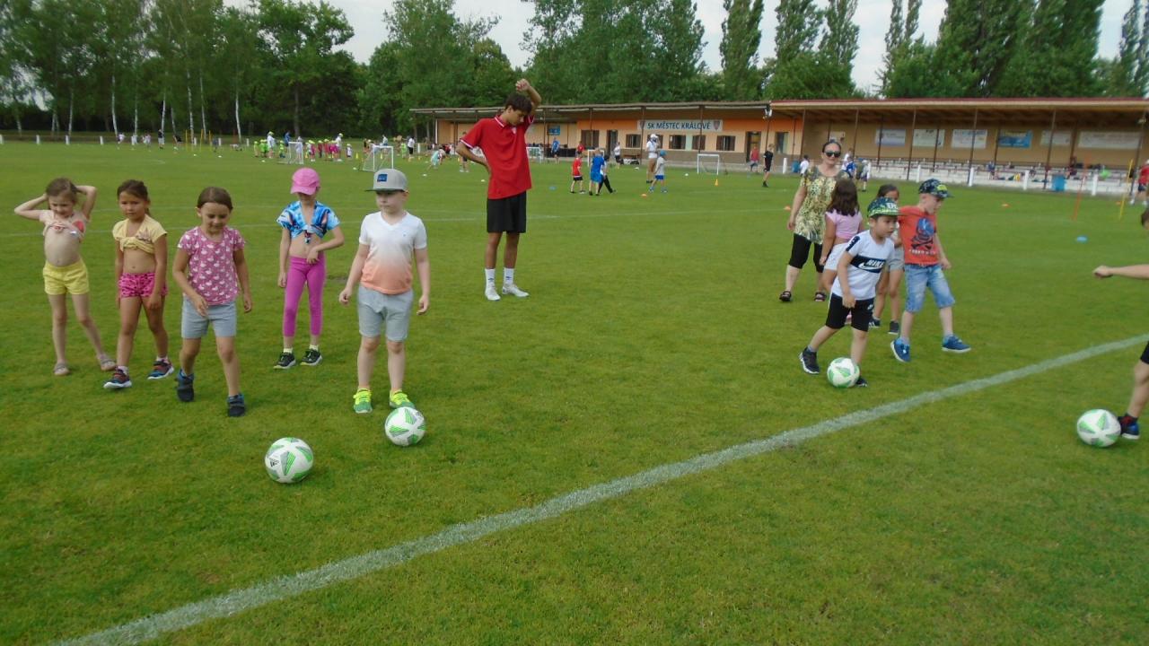 Fotbalové a sportovní soutěže na stadionu SKMK zpestřily dětem z Broučků a Motýlků jedno z posledních červnových dopolední.