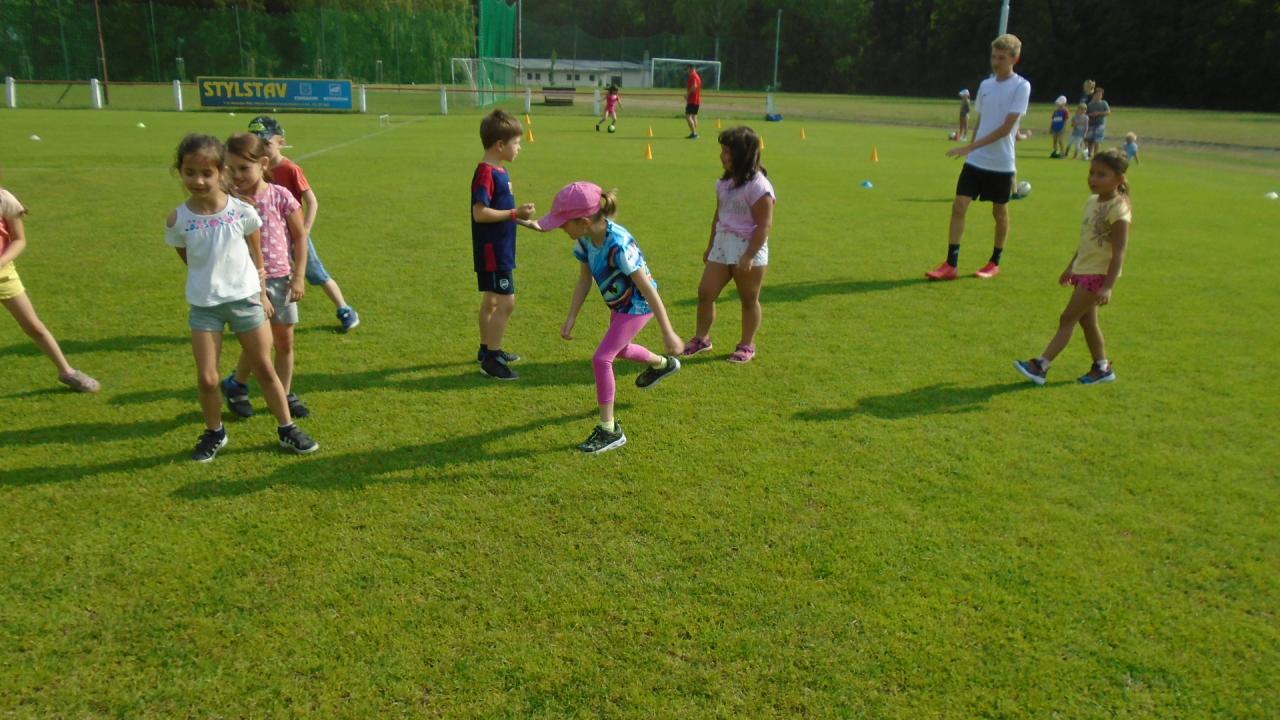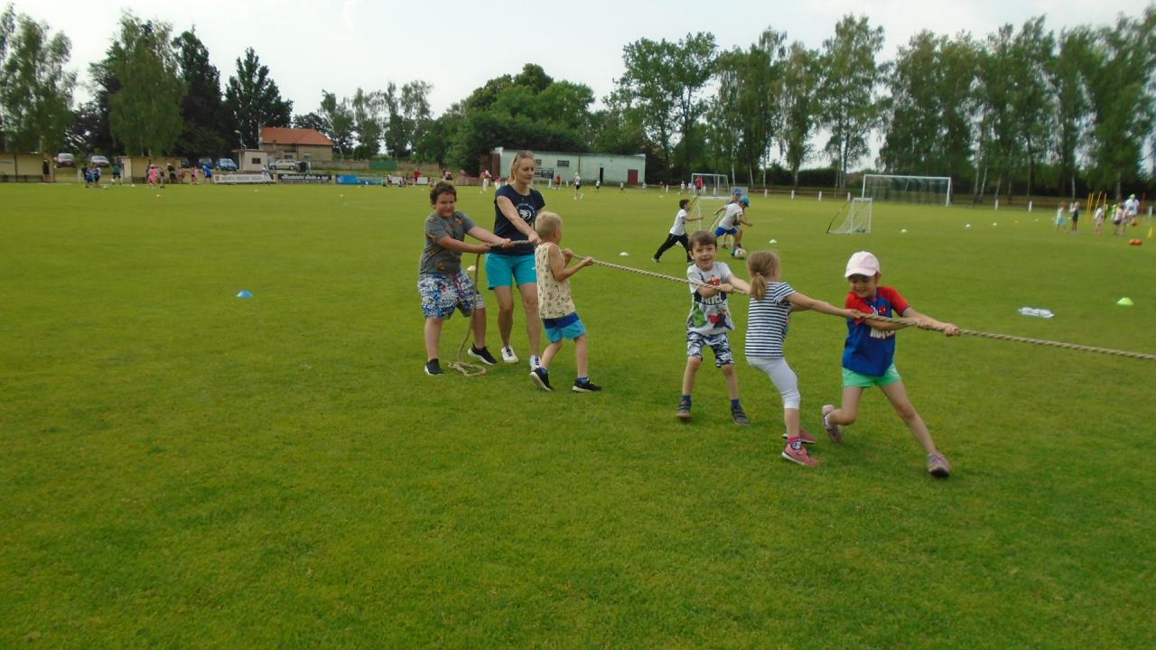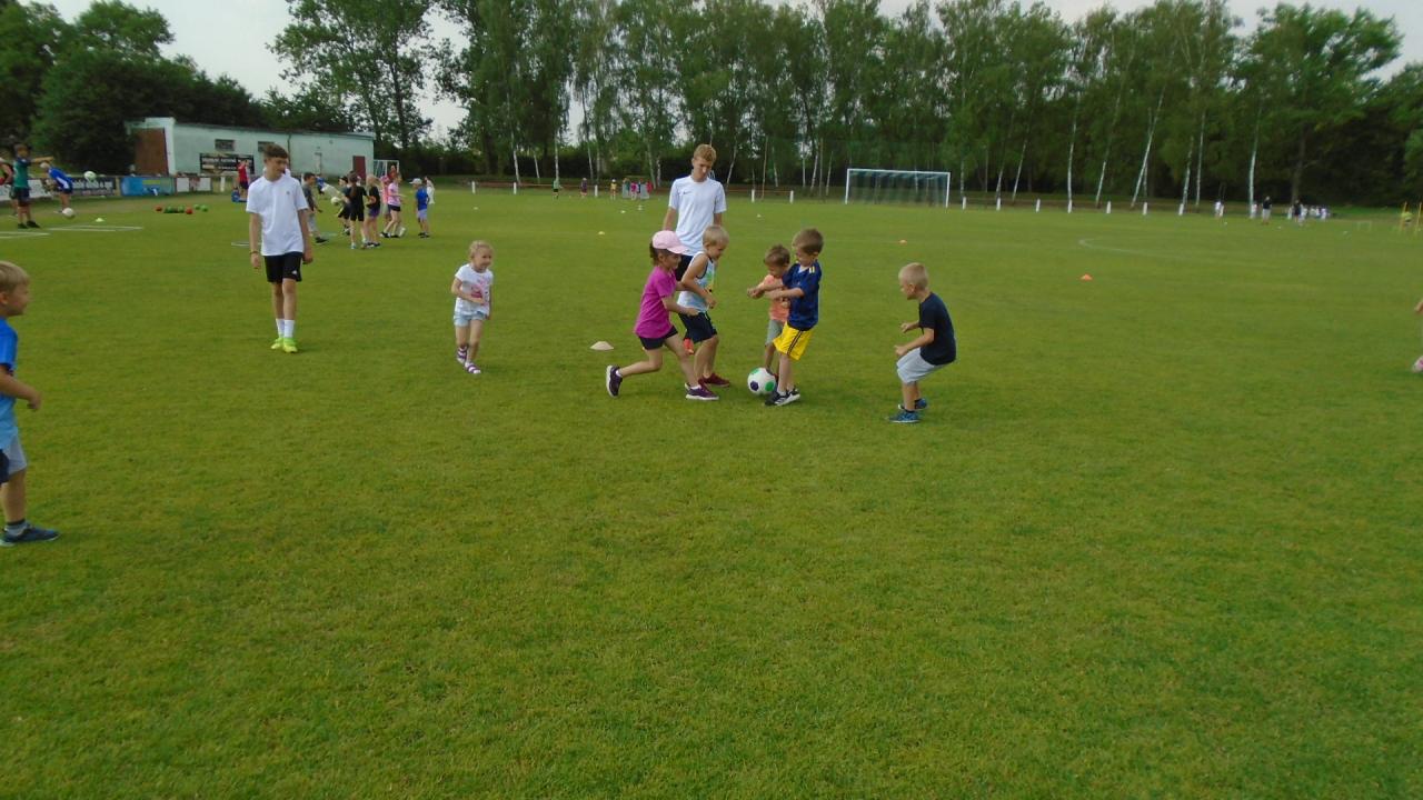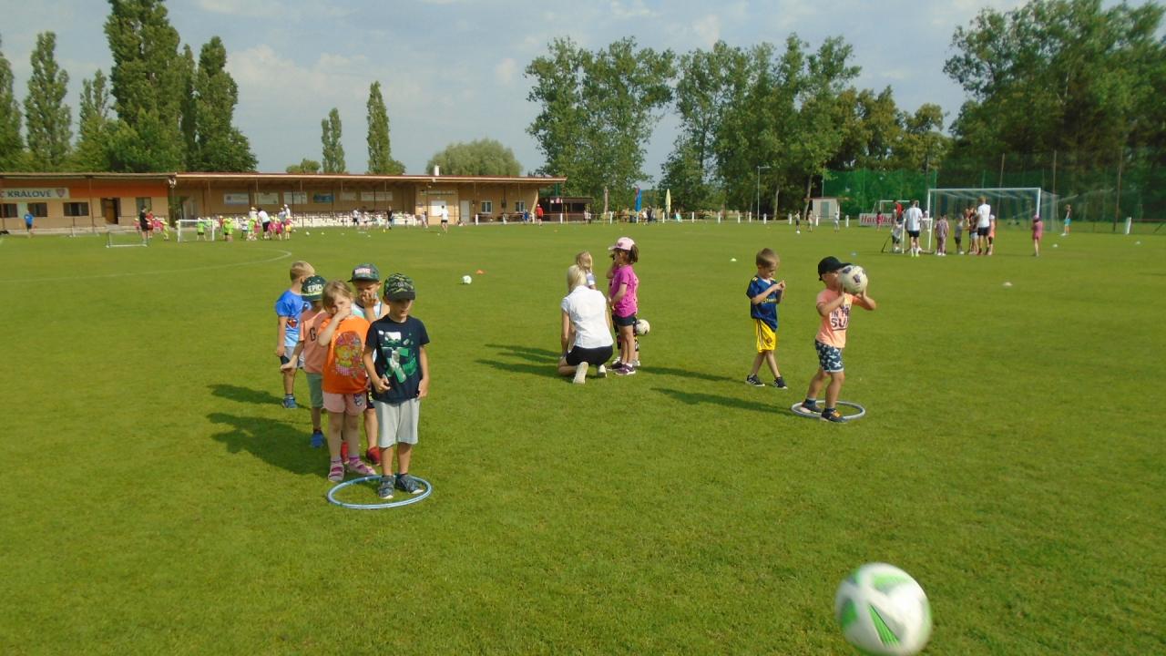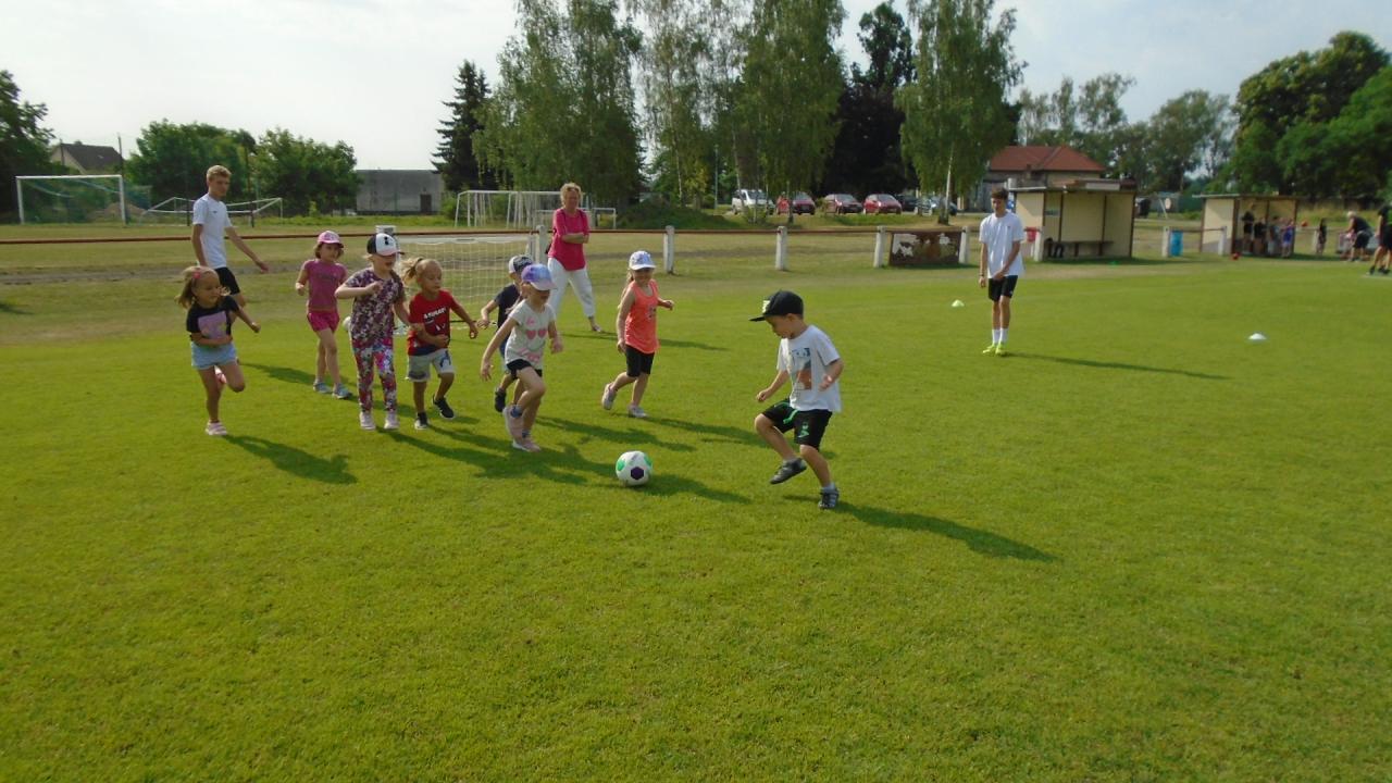 Fotbalové a sportovní soutěže na stadionu SKMK zpestřily dětem z Broučků a Motýlků jedno z posledních červnových dopolední.