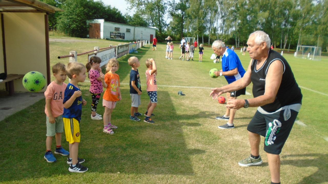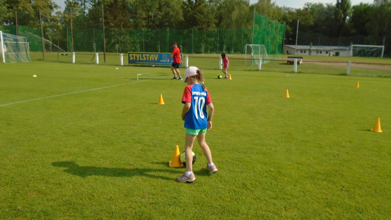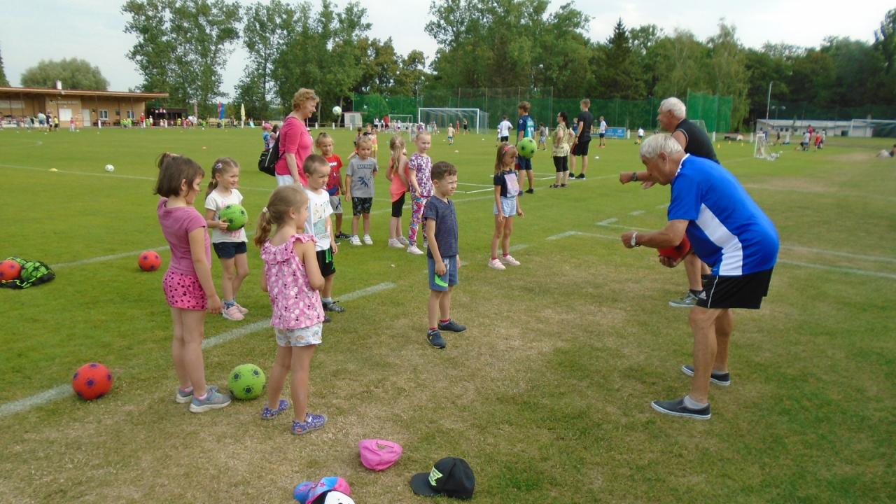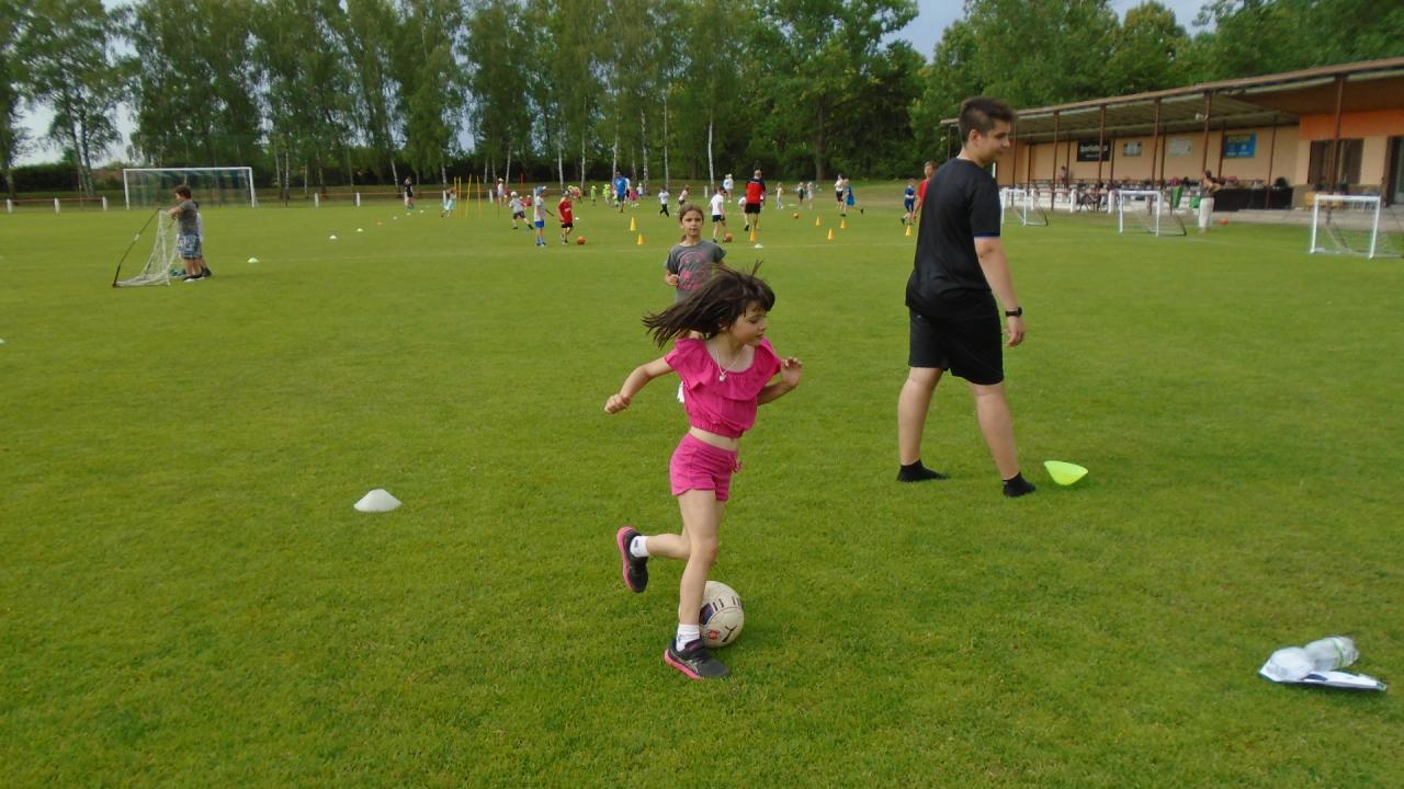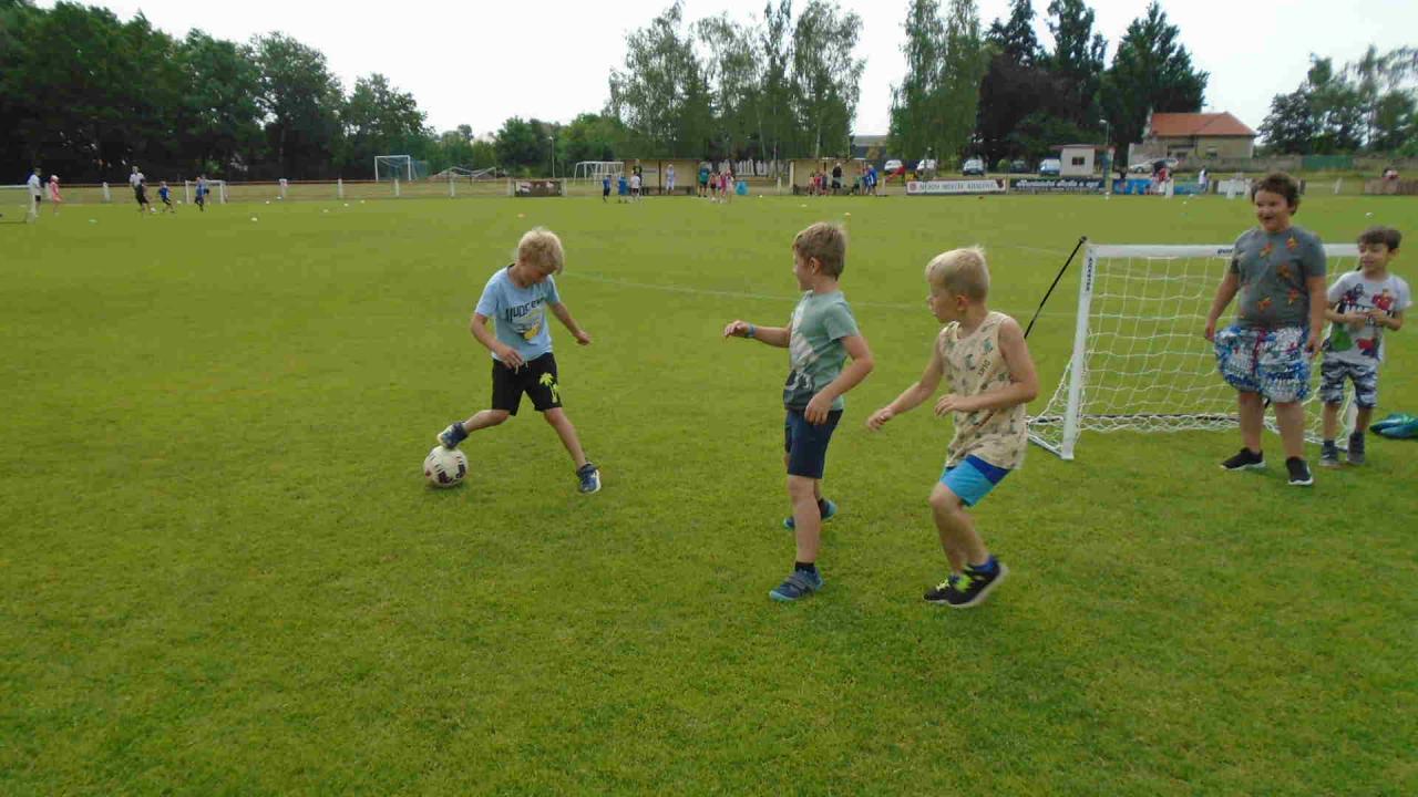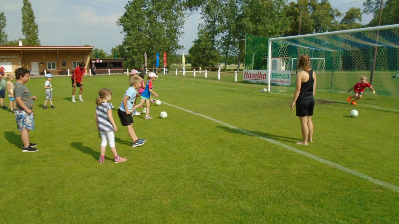 Fotbalové a sportovní soutěže na stadionu SKMK zpestřily dětem z Broučků a Motýlků jedno z posledních červnových dopolední.