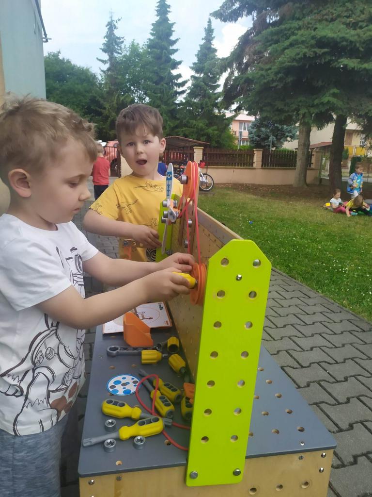 Dnes přijel do školky pan Tichý, který přivezl dětem spoustu zábavných a vzdělávacích aktivit. Děti měly možnost vyzkoušet si rybolov, balanční hry a dráhy, šlapací motokáru, magnetické bludiště a spoustu dalších her a také si natiskly krásné barevné ornamenty na svá trička.